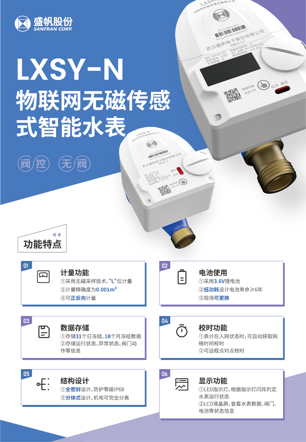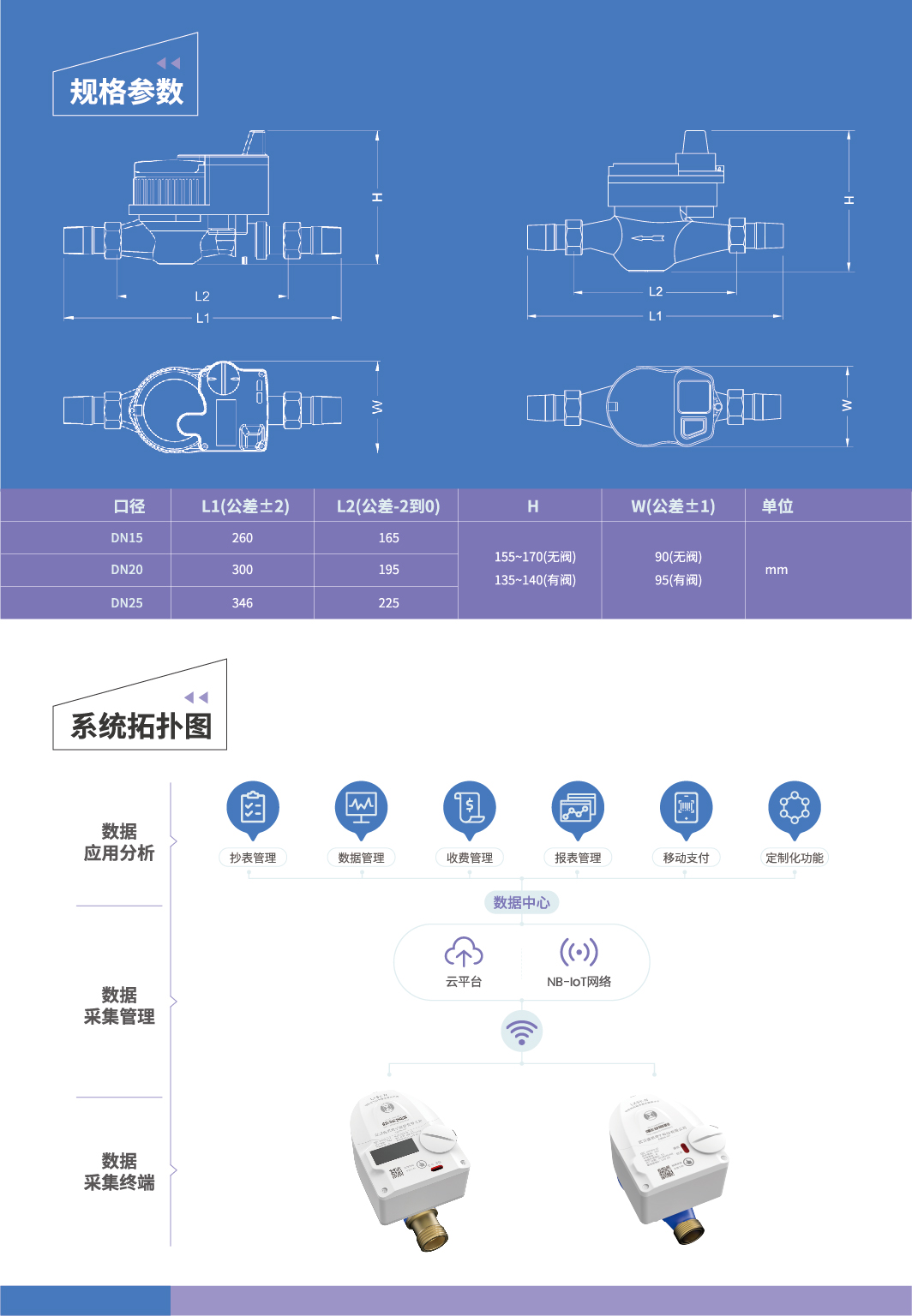 水表是流量测量中使用最广泛和最重要的仪表之一,LXSY-N远传冷水表是基于NB-IOT技术的低功耗无线远传水表,采用分体式设计,电子单元安装在独立的全密封腔体内,具有灵敏度高、抗干扰能力强、传输距离远等特点。